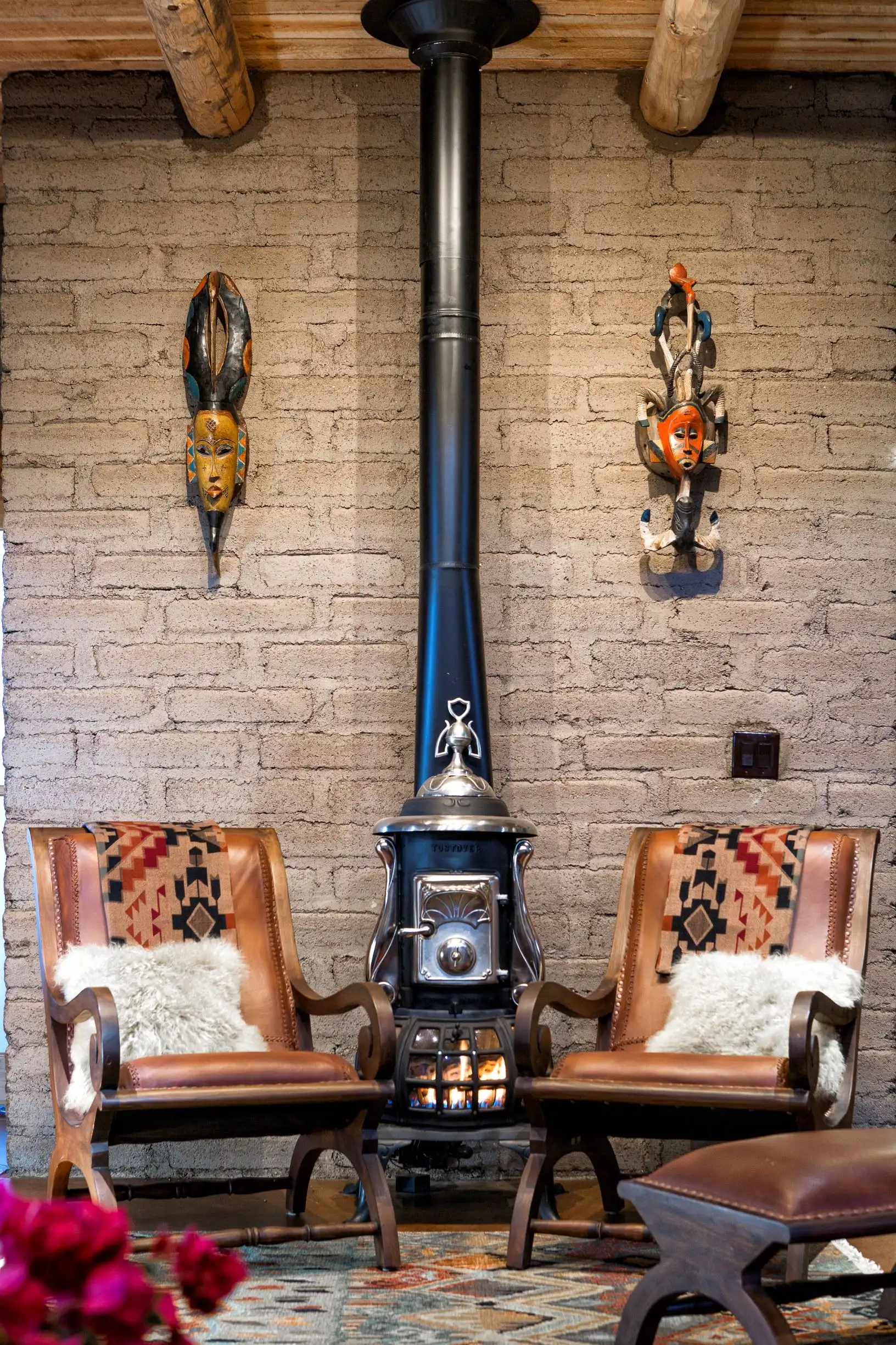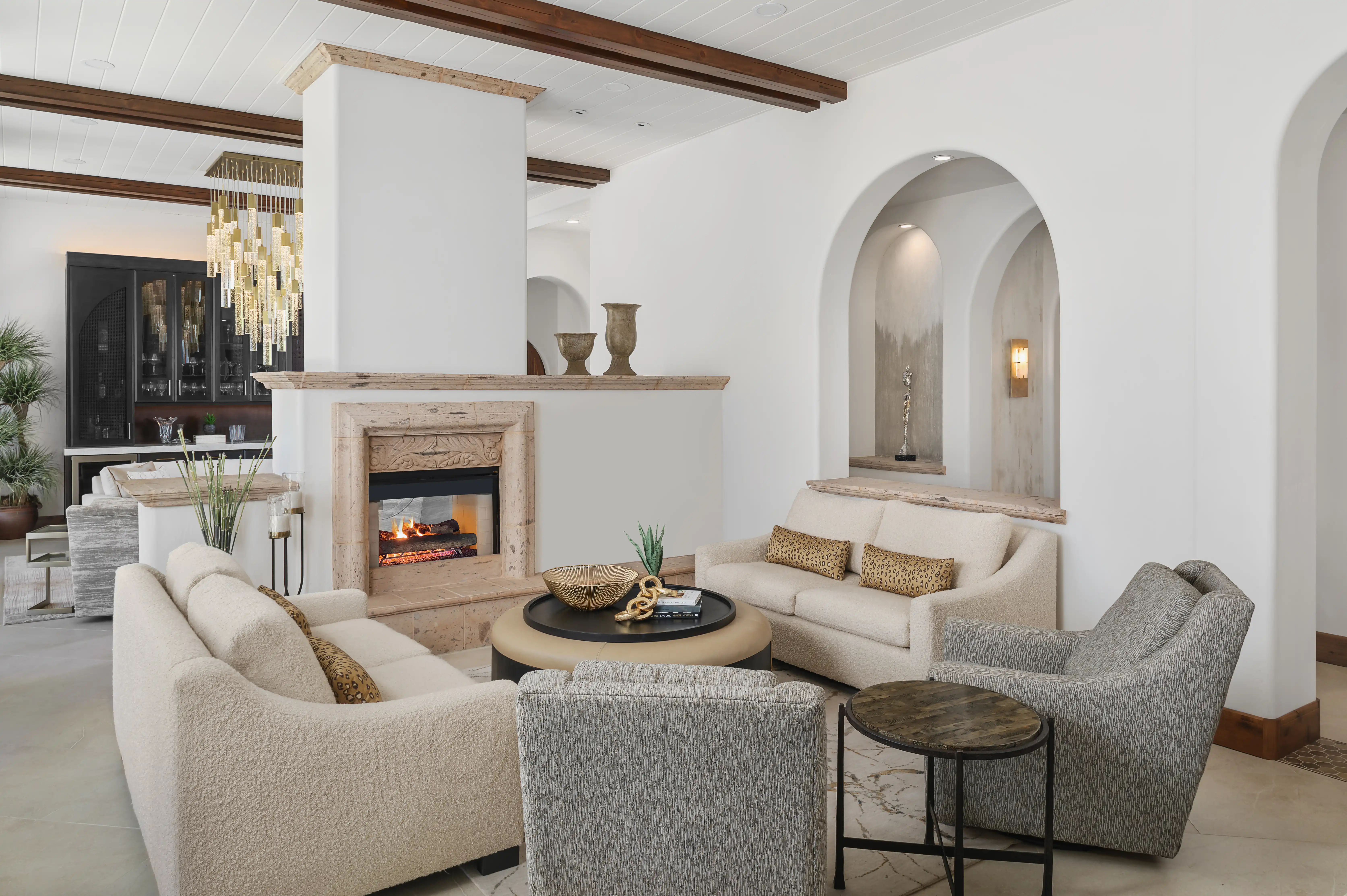 Textures: Mixing elevated natural materials like beautiful dark wood or rough-hewn stone with velvet upholstery, or matte limewashed walls with silk drapery for a luxurious contrast that heightens the impact of the room as a whole.